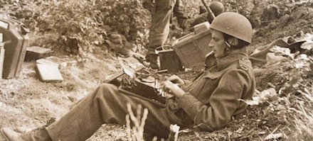 -Un reporetero de guerra en el frente de combate: surgen por primera vez en la historia.