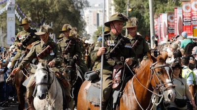 -Los decendientes directos de los ANZAC, desfilando en 1915 en la ciudad de Beersheva, comemorando el centenario de la Carga de la Caballería.